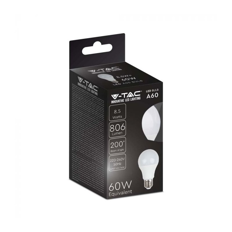L’ampoule LED 8,5W A60 de V-TAC est une solution d'éclairage pratique et moderne, conçue pour s'adapter à tous vos besoins d'éclairage intérieur. Avec son culot E27, elle se fixe facilement dans la plupart des luminaires. Émettant une lumière blanche chaude de 3000K, cette ampoule crée une ambiance conviviale et chaleureuse, parfaite pour les salons, les chambres ou les cuisines.